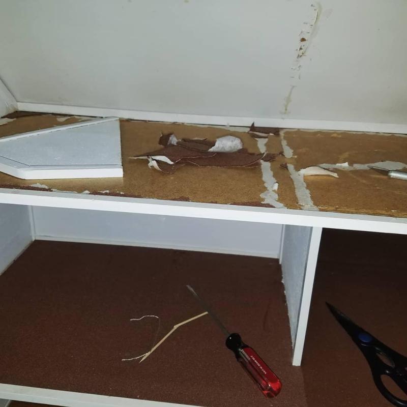 I got a lot of work done on my Craigslist farmhouse’s kitchen and dining area this weekend. I still need to install some trim, but I did a little decorating, just for fun. Here’s a look: