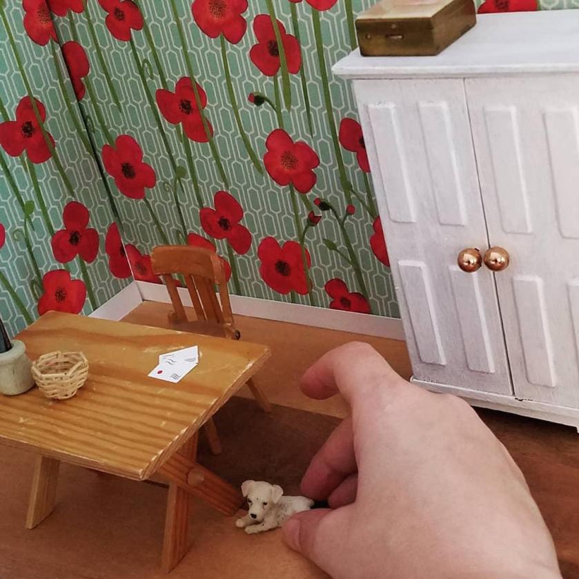 I repeated the process with the lid. It was much bigger, so I needed two sections of bamboo. Here’s a look with section one getting put into place: