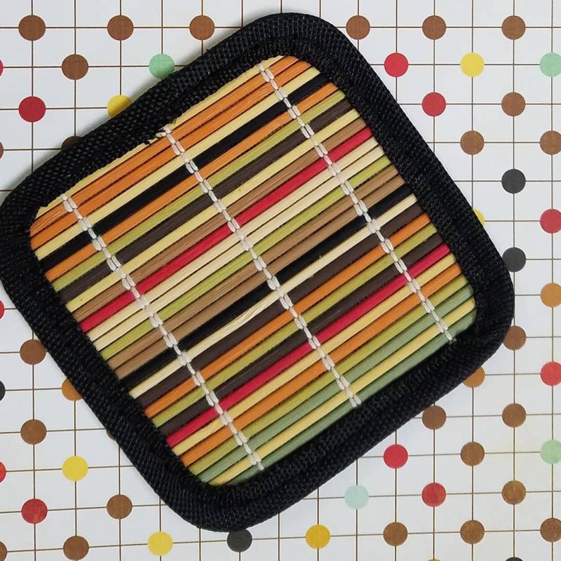 They’re made from inexpensive coasters, cut to size…