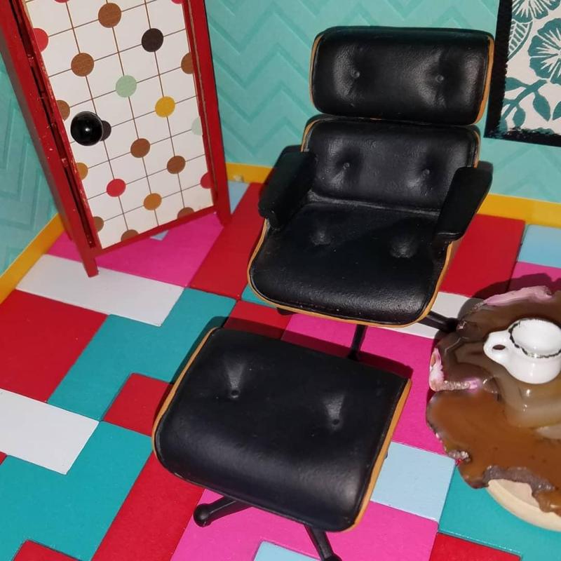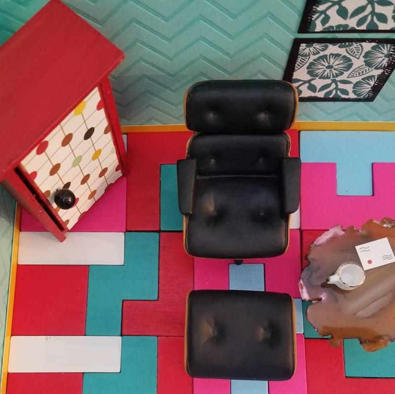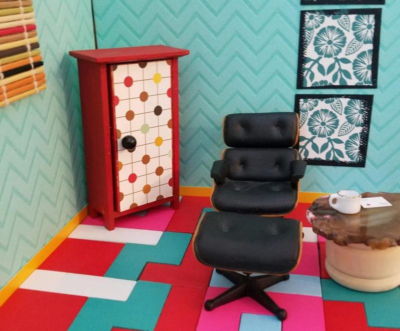The tiny pillows in the lemon-themed room are from Shepherd Miniatures. The little books are copies of my own books, cut from my author business cards.