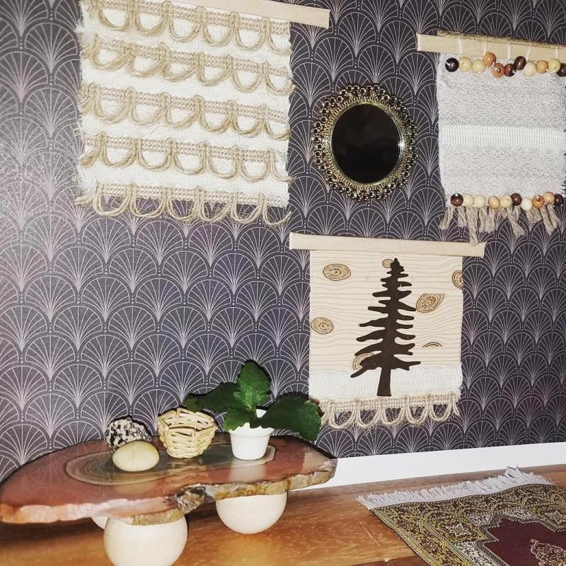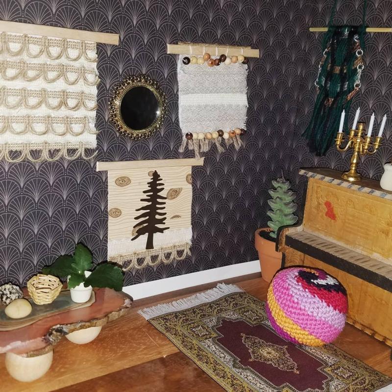 This little curtain didn’t take long to make. I used a loom that came free with Mollie Makes magazine. Here’s a look at the process: