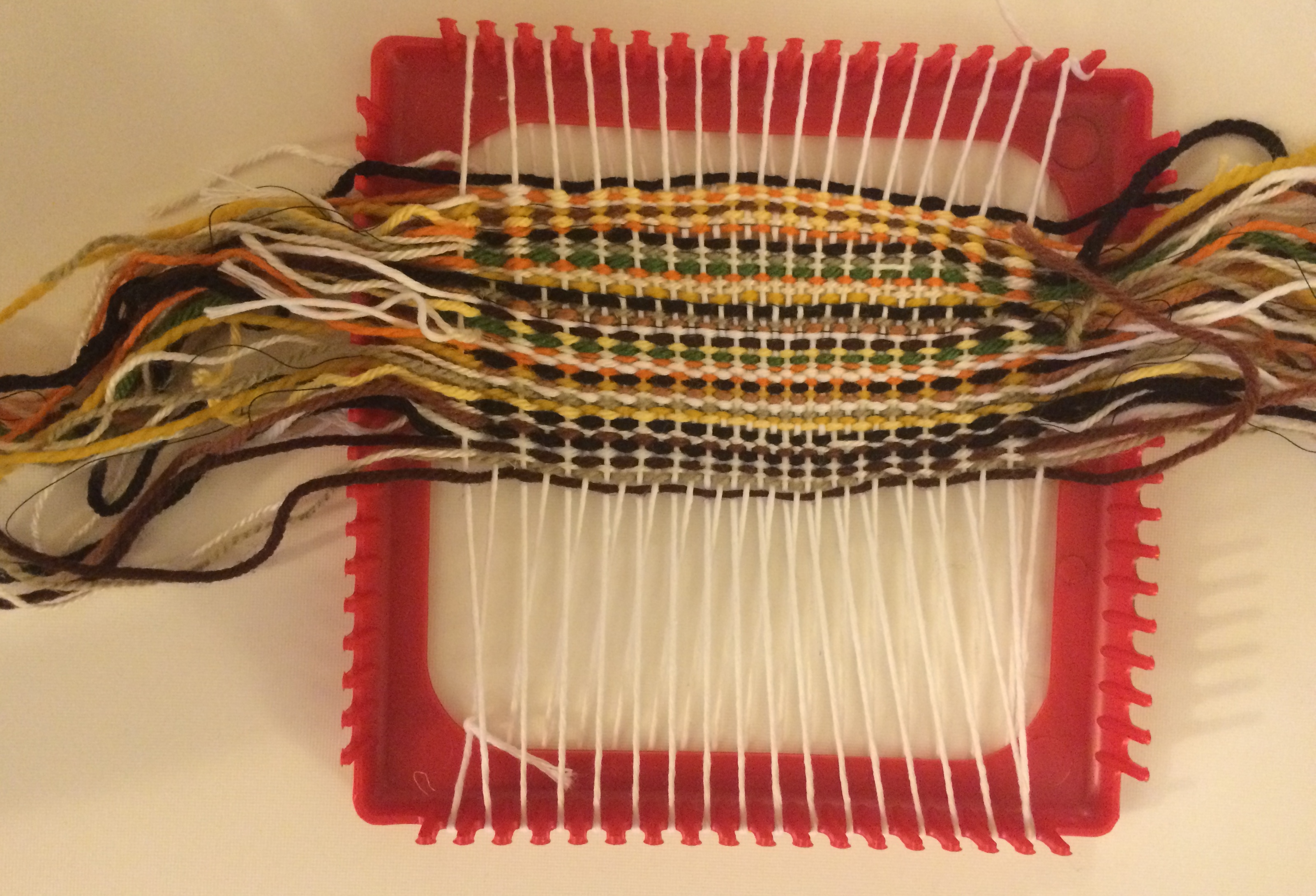 The pink tasseled wall-hanging was made from some inexpensive jewelry.