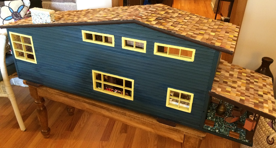The tiny pillows in the lemon-themed room are from Shepherd Miniatures. The little books are copies of my own books, cut from my author business cards.