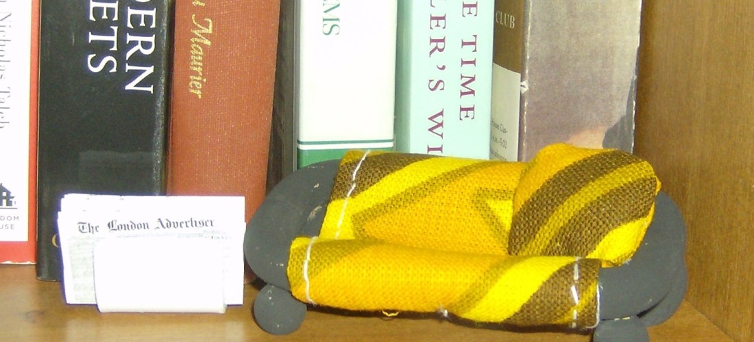 Tiny love seat and a newspaper to read. Photo by Holly Tierney-Bedord. All rights reserved.