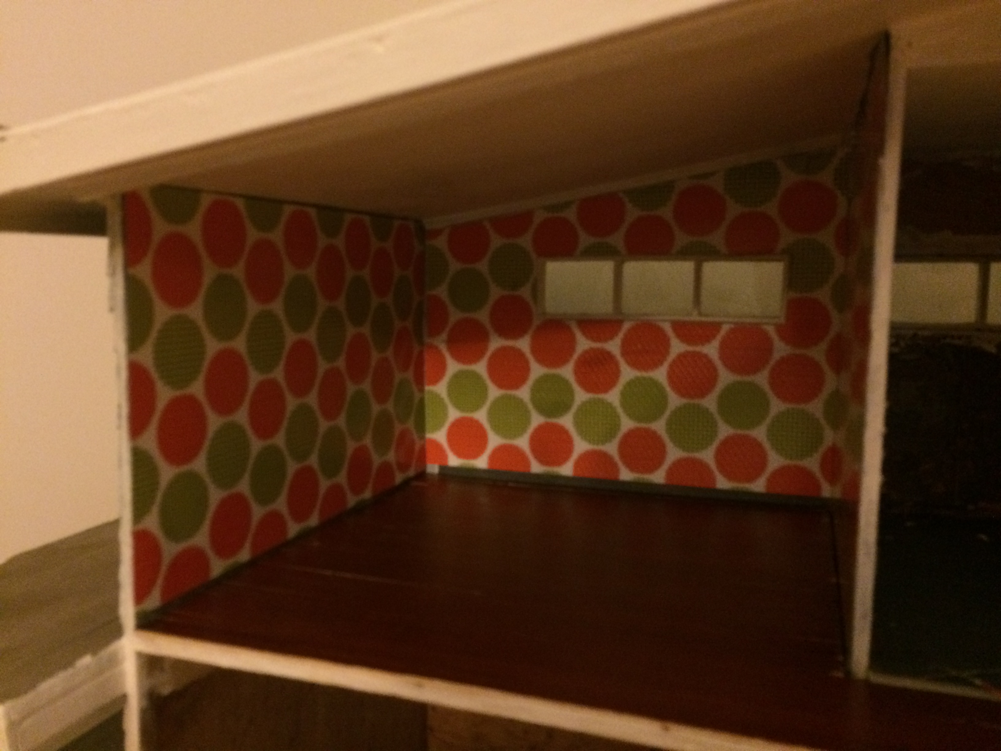 I added the refrigerator into the mix, even though it needs some more coats of paint, but left out the stove since the paint was still really wet. It looks very cute, but not exactly mid century, not exactly modern, and not exactly personality-filled like I want my house to be.